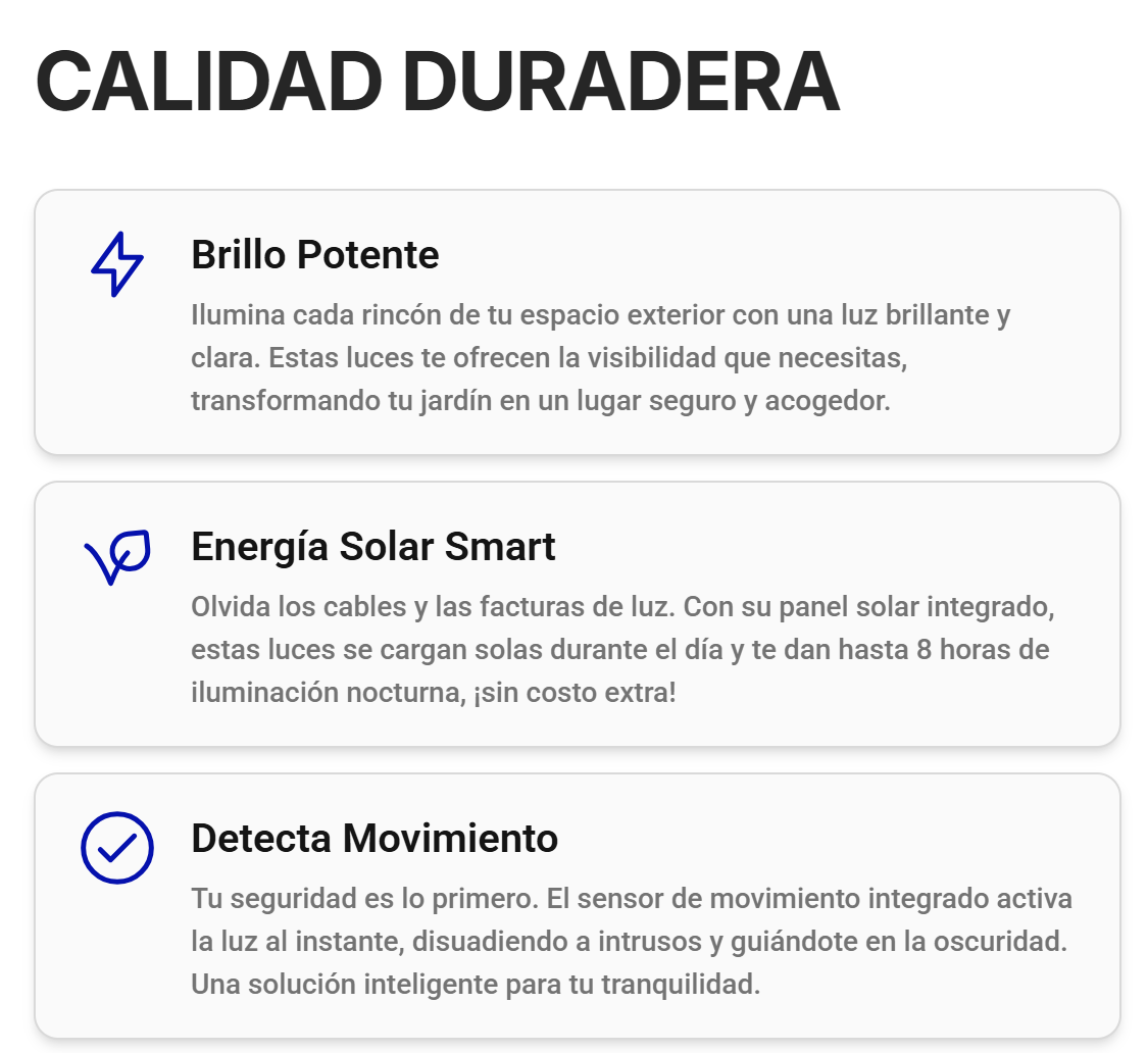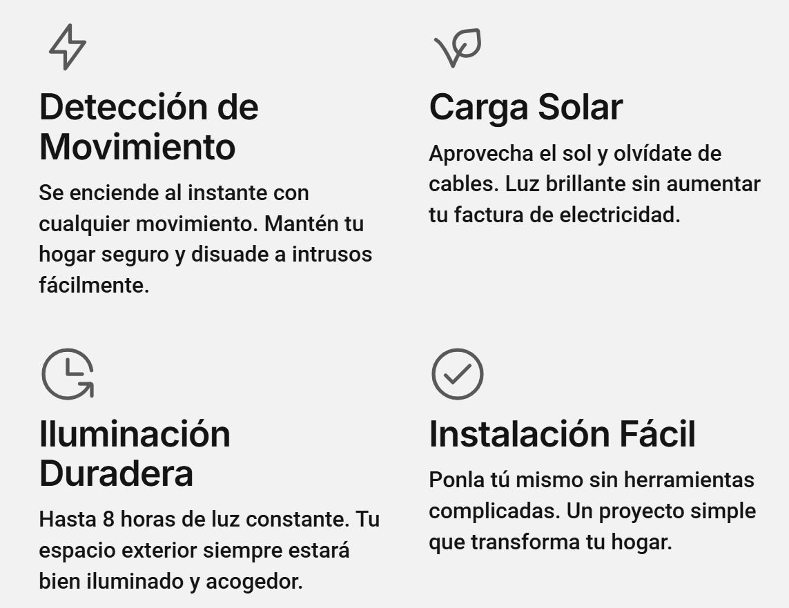 Una vez instalada, tu lámpara solar se encargará del resto. Se carga sola con el sol y se activa con el movimiento. Disfruta de la tranquilidad sin complicaciones ni facturas eléctricas adicionales. ¡Una solución brillante y sin esfuerzo!
