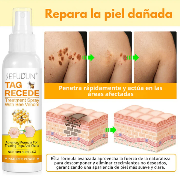 Este spray actúa secando progresivamente la verruga, ayudando a que se desprenda con el tiempo mientras cuida la piel alrededor.